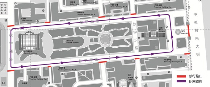 學(xué)校將在12月8日(周日)上午舉辦“2019年校園馬拉松賽”。為了保證活動(dòng)安全、有序,根據(jù)比賽線路的實(shí)際情況,經(jīng)體育部申請(qǐng),保衛(wèi)部制定了教學(xué)區(qū)部分道路臨時(shí)封閉的方案。