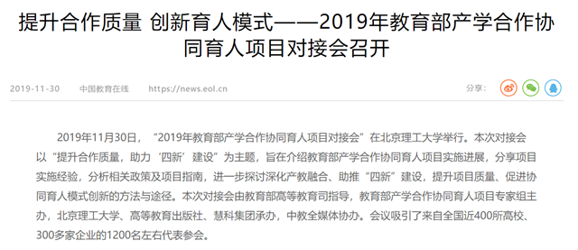 提升合作質(zhì)量 創(chuàng)新育人模式——2019年教育部產(chǎn)學(xué)合作協(xié)同育人項(xiàng)目對接會召開