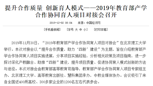 原文標題:提升合作質量 創新育人模式——2019年教育部產學合作協同育人項目對接會召開