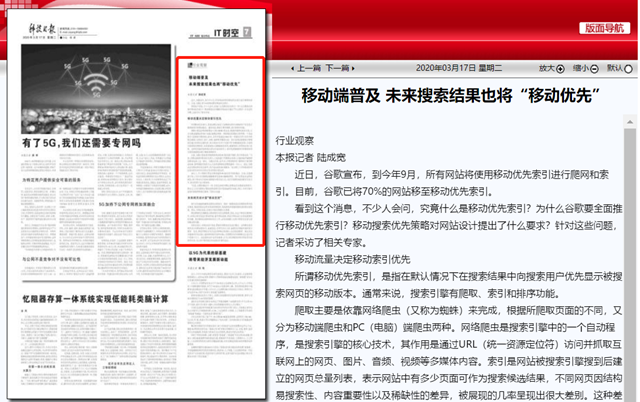 “但是,谷歌的做法不一樣,它將全面使用默認的移動優先搜索結果索引。換言之,以后谷歌將主要依托移動網頁而不是電腦網頁來建立索引,未來可能不會同時保留兩種索引版本。”閆懷志說道。