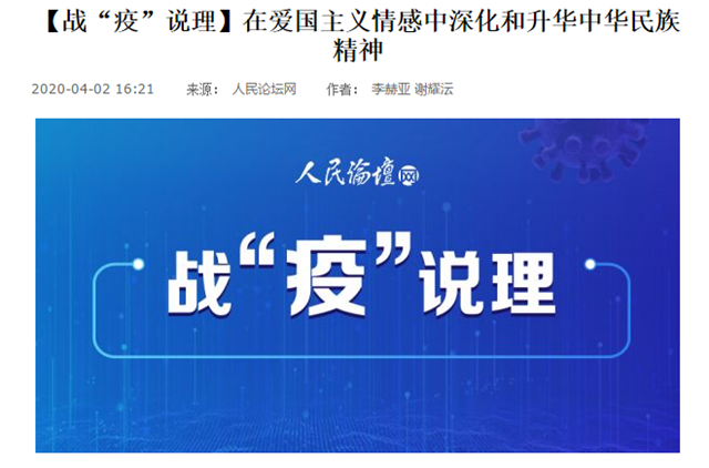 原文標(biāo)題:【戰(zhàn)“疫”說理】在愛國主義情感中深化和升華中華民族精神