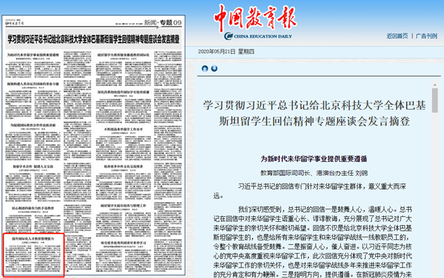 在全球抗擊新冠肺炎疫情的關(guān)鍵時刻,習(xí)近平總書記給北京科技大學(xué)巴基斯坦留學(xué)生回信,這是對廣大來華留學(xué)生、廣大青年的極大鼓舞和激勵,也為高校深化國際交流合作、培養(yǎng)更多造福世界的優(yōu)秀人才提供了重要遵循。