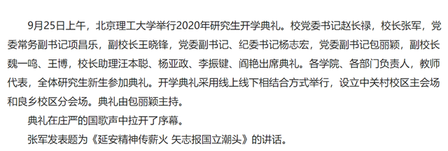 北京理工大學(xué)舉行2020年研究生開(kāi)學(xué)典禮