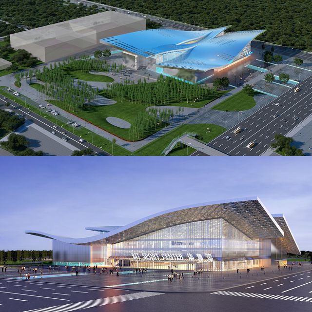文化體育中心(以下簡稱文體中心)位于良鄉校區東區北院地塊內,總建筑面積16346平方米,地上4層,地下1層,總投資15273萬元,采用鋼筋混凝土框架結構,抗震設防烈度為8度,建筑高度23.95米。文體中心屋面以“雙曲線”為造型,創意源于導彈發射后呈現的拋物線,設計新穎、靈動。文體中心將建成包括主場館(籃球、羽毛球、排球)、游泳館、健身房、乒乓球室、武術訓練房、體操房、拳擊、跆拳道及柔道、體測中心、配套設備用房等。文體中心與中關村體育館南北相望,共同承擔學校的體育教學功能,同時,與中關村體育館相比,文體中心實現了多樣化提升,不僅增加了種類多樣的體育教學項目,而且兼顧了健身、跆拳道、武術等一些高水平運動隊的用房需求,并為開展學生大型文體活動提供寬闊場所,滿足學生文體活動需要。文體中心南北通透,“灰空間”充裕,彰顯建筑自然感,提升校園美質和舒適度。