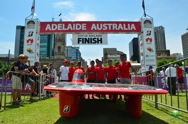 經過6天共計57小時的艱苦跋涉,“振發”號終于順利抵達終點阿德萊德。他們全程共有1823公里完全依靠太陽能完成賽事,尤其是前兩個分站段,都是自主完成賽事,沒有依靠拖車。