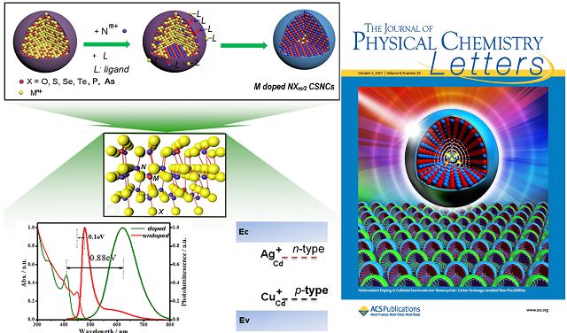2017年8月,一篇題為《膠體納米晶的異價(jià)摻雜:陽離子交換提供摻雜發(fā)光和摻雜能級(jí)調(diào)控新途徑》( “Heterovalent doping in Colloidal Semiconductor Nanocrystals: Cation Exchange-Enabled New Accesses to Tuning Dopant Luminescence and Electronic Impurities”)的論文,以封面文章的形式,在國際知名物理化學(xué)學(xué)術(shù)期刊《美國物理化學(xué)快報(bào)(Journal of Physical Chemistry Letters)》發(fā)表,并受邀以視頻形式在美國化學(xué)會(huì)網(wǎng)站進(jìn)行專題報(bào)道。
