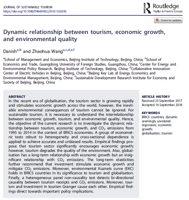 北理工管理與經(jīng)濟學院王兆華教授領銜的團隊研究成果“旅游、經(jīng)濟與環(huán)境質(zhì)量...