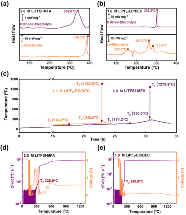圖3. MFA電解液對金屬鋰電池安全性的改善。