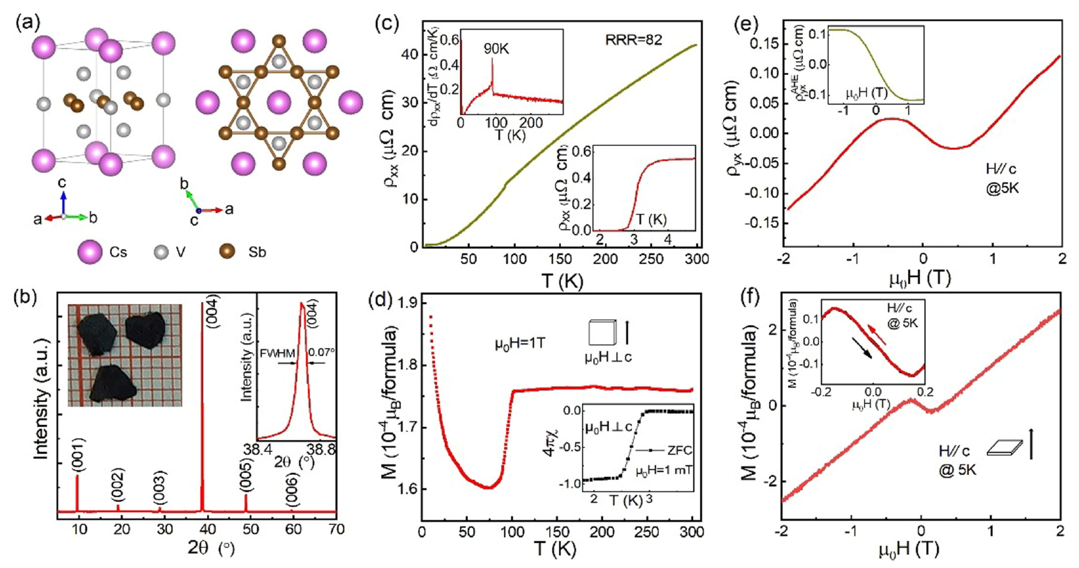 圖1 CsV3Sb5樣品的電學和磁學性質