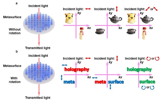 近日,北理工光電學院王涌天教授團隊黃玲玲教授等人和德國帕德博恩大學Thomas Zentgraf教授課題組合作,提出了一種基于雙折射介質超穎表面的多通道矢量全息的顯示與加密方法。該項研究成果發表在光學領域著名期刊Light: Science & Applications (volume 7, Article numer: 95(2018))上,題目為Multichannel vectorial holographic display and encryption。