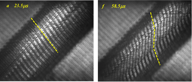 在沖擊載荷下,絕熱剪切帶被認為是材料失效的重要機理之一。自從Zener和Hollomon提出絕熱剪切局部過程是一種熱-塑性失穩(wěn)后,許多研究者認為絕熱剪切帶是由于材料熱軟化與應(yīng)變/應(yīng)變率硬化之間的競爭導(dǎo)致的。此外,剪切帶內(nèi)的材料再結(jié)晶表明絕熱剪切帶形成伴隨著溫度上升。因此,目前大部分學(xué)者認為溫度上升是導(dǎo)致絕熱剪切帶形成的主要因素。然而,這一普遍接受的認識還未得到實驗驗證,主要由于兩方面難題亟待解決:一是絕熱剪切對測溫儀器提出“兩高一寬”的要求,即高時間分辨(微秒級)、高空間分辨(十微米級)、寬測溫區(qū)間(近千度);另一方面,需要搭建微秒級同步紅外測溫和光學(xué)測變形的實驗平臺,才能揭示絕熱剪切帶形成和溫度升高兩者之間的因果關(guān)系。