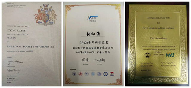 圖2 張加濤教授近2年獲得的英國(guó)皇家化學(xué)會(huì)會(huì)士稱(chēng)號(hào)及國(guó)際獲獎(jiǎng)