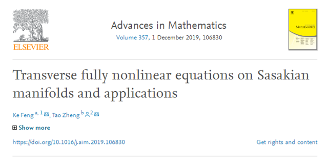 日前,北京理工大學數學與統計學院鄭濤副研究員在數學頂級學術期刊《Advances in Mathematics》在線發表題為“Transverse fully nonlinear equations on Sasakian manifolds and applications”的研究論文。該論文研究了Sasaki流形上一類完全非線性方程的可解性,作為幾何應用,證明了Sasaki流形上橫截(強)Gauduchon度量和橫截平衡度量的Calabi-Yau型定理。論文同時指出,這類完全非線性方程在復余維為n的緊致無邊具有橫截Hermite度量的緊葉層流形上也是可解的,作為幾何應用,論文給出了橫截Hermite度量和橫截(強) Gauduchon度量的Calabi-Yau型定理。