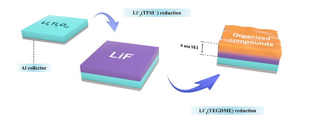 通常,理想的水系SEI膜應(yīng)具有均勻的厚度、低溶解度、較好的柔韌性以及有效分離活性物質(zhì)與電解質(zhì)的能力。醚類溶劑,特別是TEGDME,由于具有較高的介電常數(shù),可以實(shí)現(xiàn)電解質(zhì)鋰鹽陰陽(yáng)離子對(duì)的有效分離,提高鋰鹽在電解液中的濃度,從而獲得較高的電導(dǎo)率。同時(shí),醚類溶劑形成的SEI膜具有薄、致密、結(jié)構(gòu)均勻等優(yōu)點(diǎn),因此可以作為有效的水系電解質(zhì)溶劑組分之一,提高電池的穩(wěn)定性。