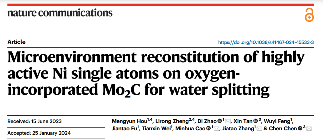 論文標題:Microenvironment reconstitution of highly active Ni single atoms on oxygen-incorporated Mo2C for water splitting