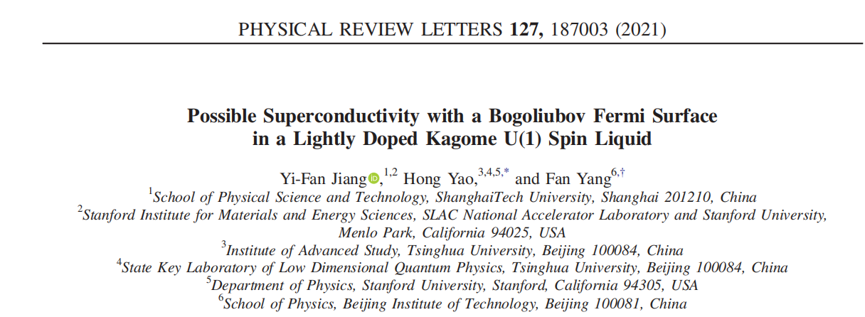 近日,北京理工大學(xué)物理學(xué)院楊帆教授與合作者在高溫超導(dǎo)機(jī)理領(lǐng)域取得重要進(jìn)展。相關(guān)研究成果"Possible Superconductivity with a Bogoliubov Fermi Surface in a Lightly Doped Kagome U(1) Spin Liquid"在國際頂尖刊物《Phys. Rev. Lett》上發(fā)表。