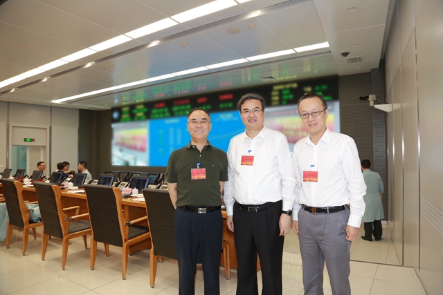 北京理工大學(xué)校長張軍院士、副校長龍騰在北京飛控指揮中心觀看衛(wèi)星發(fā)射