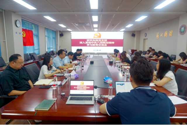 會上,研究生院副院長何洪文傳達了上級會議精神,支部委員交流了學習體會,王曉庸作重點發言。
