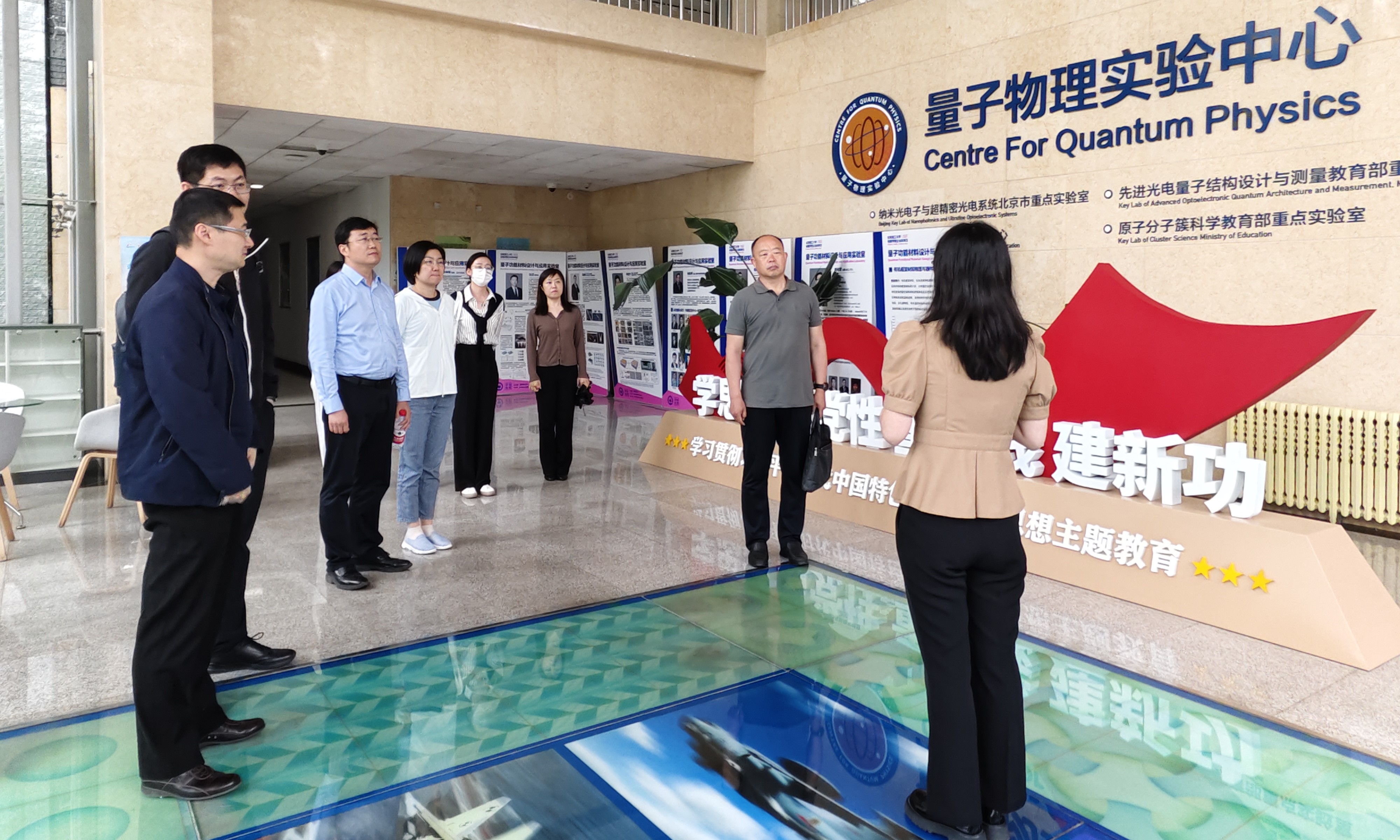 物理學院負責人向與會人員介紹量子物理實驗中心基本情況,并帶領參觀量子功能材料設計與制備、量子功能材料表征與分析、量子功能材料光電測量與應用等方向的重點實驗室建設,介紹了量子物理實驗中心在支撐基礎物理研究、理工融合發展、攻關關鍵技術方面的重要作用。