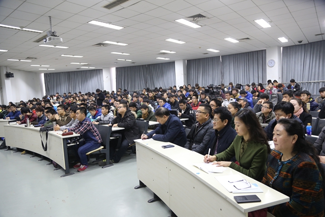 12月8日上午,北京理工大學黨委書記張煒在良鄉校區理科教學樓103教室為我校本科生講授思想政治理論課“堅持實事求是的思想路線”專題。校黨委副書記、副校長項昌樂,校長助理郝志強,學校辦公室、黨委組織部、黨委宣傳部、黨委學生工作部、馬克思主義學院等相關單位負責人出席了本次思政課,基礎教育學院及其他專業學院師生代表以及張煒書記聯系的2014級工程力學班的同學們共計300余人聆聽了這堂課。