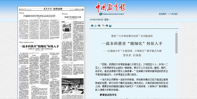 一流大學必須要有一流的本科教育,傳統教學模式已經不能適應高等教育的發展,研討式學習模式逐漸涌上課改浪尖。從教的被動到學的主動之間,需要怎樣的精細化磨合與探究?“大班授課、小班研討”教學模式躍入湖南大學教改視閾。