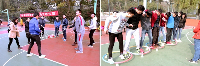 2016年11月5日,學院共學會在良鄉籃球場舉辦了“青馬工程”六期開班后的第一項活動——素質拓展。本次素質拓展項目共有“破冰之旅”、“動感顛球”、“過呼啦圈”、“困境逃脫”、“比腿長”、“你畫我猜成語大賽”、“能量傳輸”共7項,考驗了學員的團隊合作能力,使學員迅速熟悉并緊密地團結在一起,為后續的小組學習打下良好基礎。