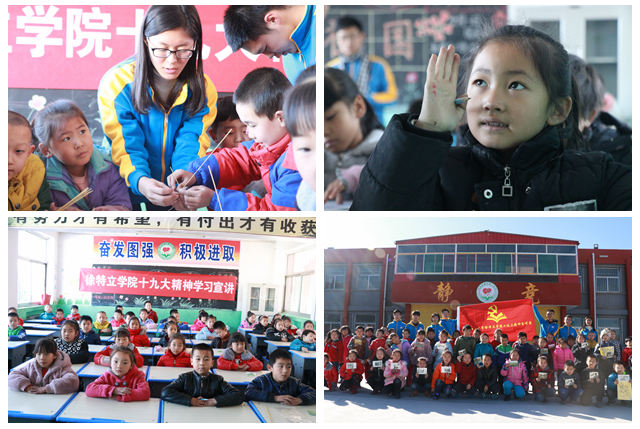 在方山縣第一中學、方山縣城內第三小學,徐特立學院十九大精神宣傳學習小組分別舉辦了兩場報告會,超過100名學生參加。為了進一步提高課程針對性,增強宣講效果,學習小組結合不同年級的學生特點開展主題課程。經過前期近一個月的努力籌備,學習小組精心設計了《畫說十九大》、《長征故事》等5門精品課程,通過話劇表演、知識競賽、繪畫創作等方式幫助同學們更生動、更直觀地學習十九大精神。聽完宣講,同學們紛紛表示感觸頗深,收獲很大。小學二年級的秦潔玥同學說:“最喜歡哥哥姐姐們表演的長征故事,非常有趣,我以后也想到北京去讀大學,成為像哥哥姐姐一樣的大學生,為祖國的發展做貢獻!”宣講活動得到了對接學校和學生們的一致好評。