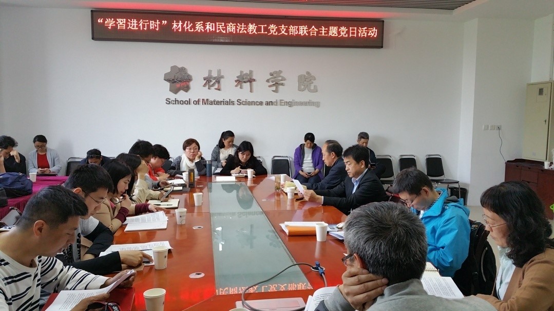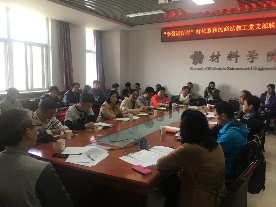 4月25日下午,北理工法學院民商法所教工黨支部與材料學院材料物理與化學教工黨支部在五號教學樓5層會議室共同舉辦了“創新融合”主題黨日活動。