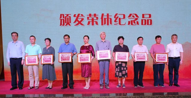 “春風化雨育桃李,傾盡丹心鑄師魂”,大會第一篇章“感恩·師緣”在溫馨的榮休教師代表采訪視頻中拉開序幕。為感謝退休教師群體為學校發展作出的突出貢獻,本次大會為2019至2020學年退休教師舉行了隆重的榮休儀式,校黨委書記趙長祿、校長張軍為李海龍、王麗瓊、馬樹元、崔小虹、白廷柱、鐘漫如、張強、羅振生8位榮休教師代表頒發紀念品。