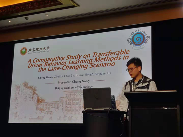 在“一對一”學術導師、機械與車輛學院智能車輛研究所龔建偉教授的指導下,徐特立學院2016級機械工程方向本科生龔乘的論文《A Comparative Study on Transferable Driver Behavior Learning Methods in the Lane-Changing Scenario》經過同行評審與編委評審后被會議接收。在學院國際化培養計劃的支持下,龔乘作為第一作者受邀赴新西蘭參加會議并在Special Session on Human Factors in Intelligent Transportation Systems議程進行口頭展示匯報。龔乘介紹了基于類人駕駛經驗的可遷移駕駛員模型,展示了針對駕駛員模型可遷移性上的對比研究。研究實現了在僅需較少數據量的情況下建立較高精度駕駛員模型的目的,減少了駕駛員模型學習建立所需的經驗數據及其帶來的高昂的采集成本,對未來建立個性化先進駕駛員輔助系統(ADAS),提高駕駛員接受程度提供了一個新的思路。