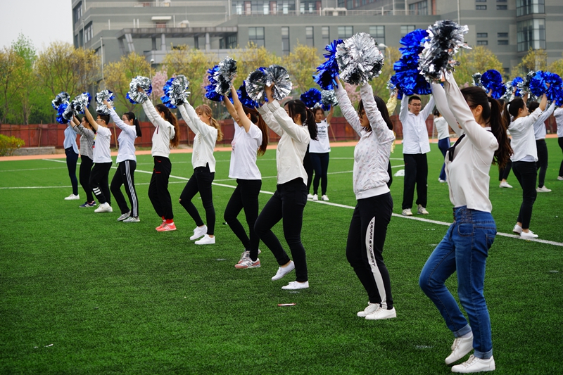 作為一項(xiàng)普及性極強(qiáng),集舞蹈、體操、音樂(lè)、健身于一體的集體體育項(xiàng)目,啦啦操集體表演早早就被確定為第55屆首都高校田徑運(yùn)動(dòng)會(huì)開幕節(jié)目。規(guī)定動(dòng)作、方陣走位以及適應(yīng)音樂(lè)編排節(jié)奏都需要多次練習(xí)才能達(dá)到一致協(xié)調(diào)的效果,“我們第一次訓(xùn)練是3月18日,先對(duì)各學(xué)院的骨干成員進(jìn)行了培訓(xùn)。”王娟老師說(shuō),“之后由骨干成員帶領(lǐng)各學(xué)院的同學(xué)先進(jìn)行學(xué)院內(nèi)部的培訓(xùn)和練習(xí)。”