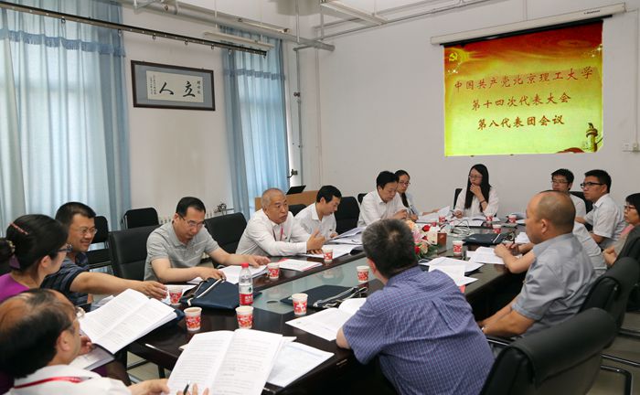 2015年5月26日下午,中共北京理工大學(xué)第十四次代表大會第八代表團(tuán)會議在5號教學(xué)樓5011會議室召開,學(xué)校黨委副書記、副校長李和章,第八代表團(tuán)團(tuán)長、化工學(xué)院黨委書記張振華,副團(tuán)長、化學(xué)學(xué)院黨委書記趙文祥等14名代表參加了會議。